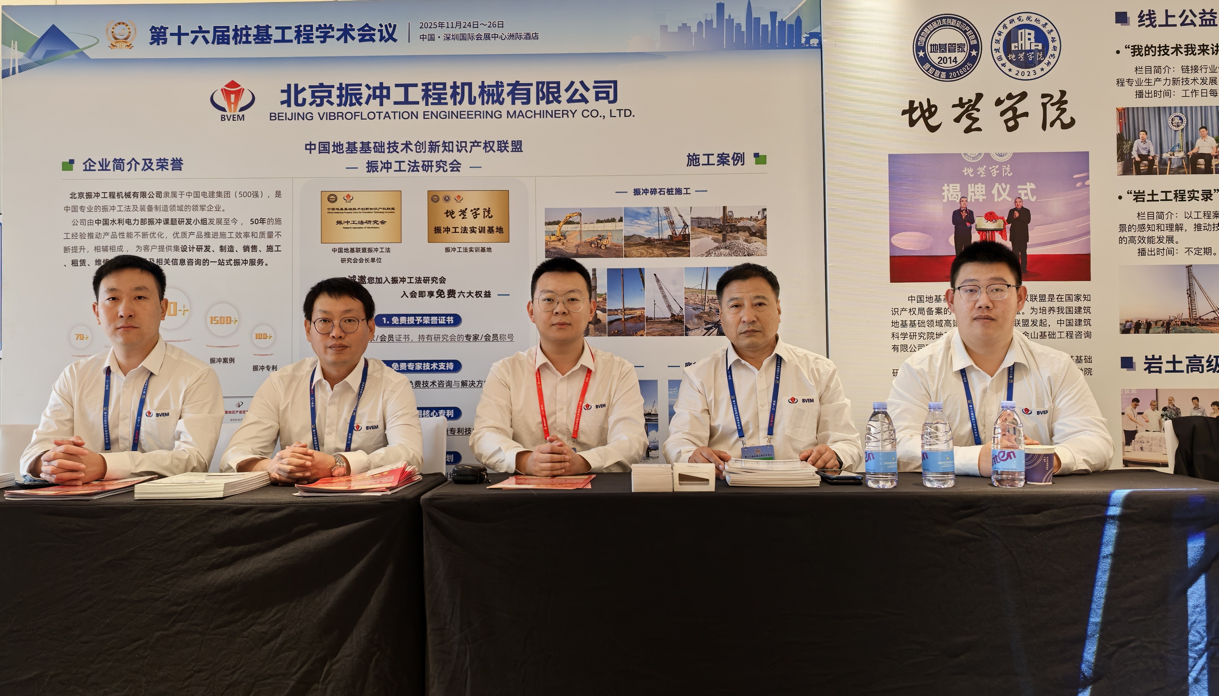 南国鹏城,热潮涌动。近日,备受业界瞩目的第十六届桩基工程学术会议在深圳隆重召开。本次会议以“学术交流、智能、高效——桩基工程的创新与挑战”为主题,汇聚了来自全国各地的院士、专家学者、企业代表及工程技术人员。北京振冲工程机械有限公司(以下简称 :北京振冲机械)荣幸受邀参会,与业界同仁共襄盛举,见证并推动行业前行。