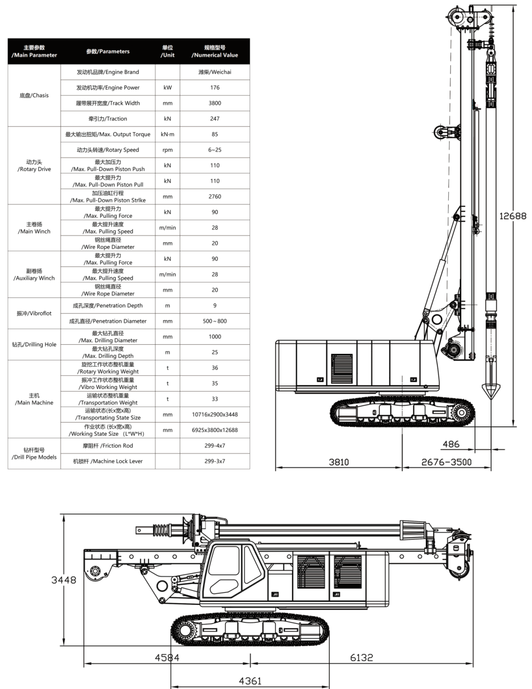 The dual functions of rotary drilling rig and vibro pile driver can be realized respectively.